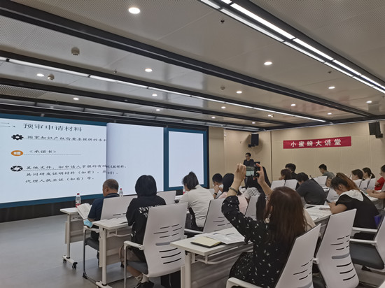 会上,沈阳保护中心预审服务部祝国飞老师,通过对专利预审、申请条件、申请流程等方面进行详细讲解,让企业深入了解预审工作,走上专利申请的“快车道”。随后,刘老师和大家交流拥有知识产权可享受到的政策,具有很强的指导实践作用,现场企业反响强烈,小蜜蜂会计将持续助力企业成长,为企业发展护航!